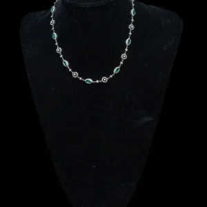 This exquisite double-strand necklace features a series of intricately designed links, each adorned with shimmering crystals. The elegant design and sparkling embellishments make this necklace the perfect accessory for any special occasion, adding a touch of sophistication and glamour to your ensemble. The high-quality craftsmanship ensures durability, while the adjustable length offers versatility for different necklines. Ideal for weddings, formal events, or as a statement piece for your evening attire.