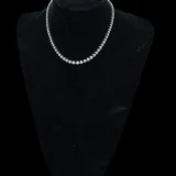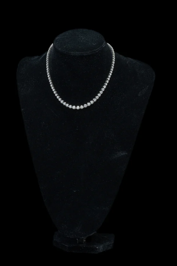 This “Eternal Luster Necklace” captures the essence of timeless elegance. Crafted with an array of brilliant diamonds, each gem is set in a meticulous alignment that radiates a captivating sparkle from every angle. The uniformity of the stones amplifies their collective luminescence, creating a continuous band of light that gracefully adorns the neck. The design is both classic and sophisticated, making it an exquisite choice for both everyday luxury and special occasions. It’s a testament to skilled craftsmanship, where the simplicity of the design enhances the natural beauty of the diamonds, ensuring that this necklace remains a cherished piece for generations. Ideal for someone who cherishes refined and understated elegance, this piece complements any outfit with a touch of grandeur.
